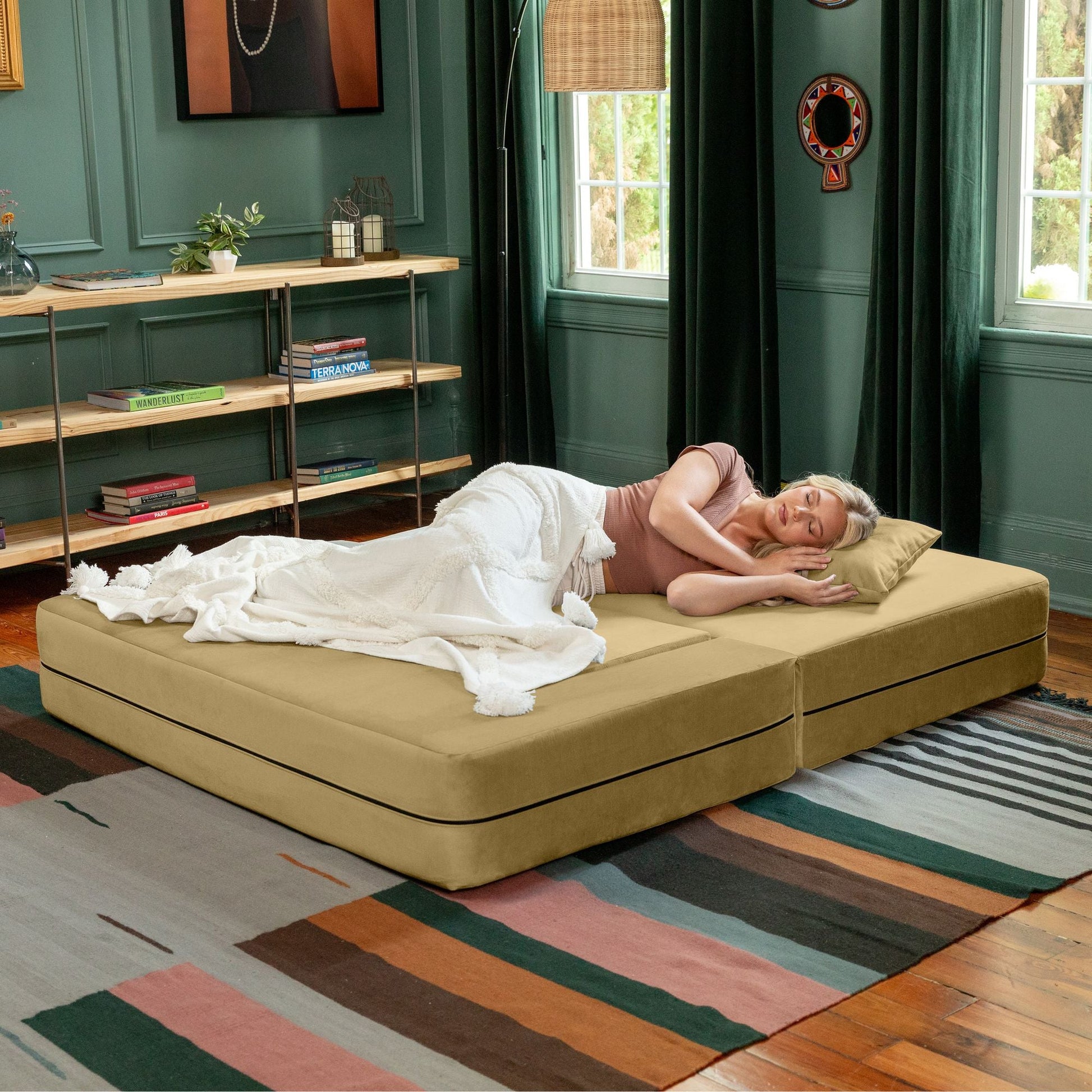 MULTIFUNCTIONAL – Stack the ottomans inside for a unique play-table or reading station, or fold out completely for a full queen-size sleeper