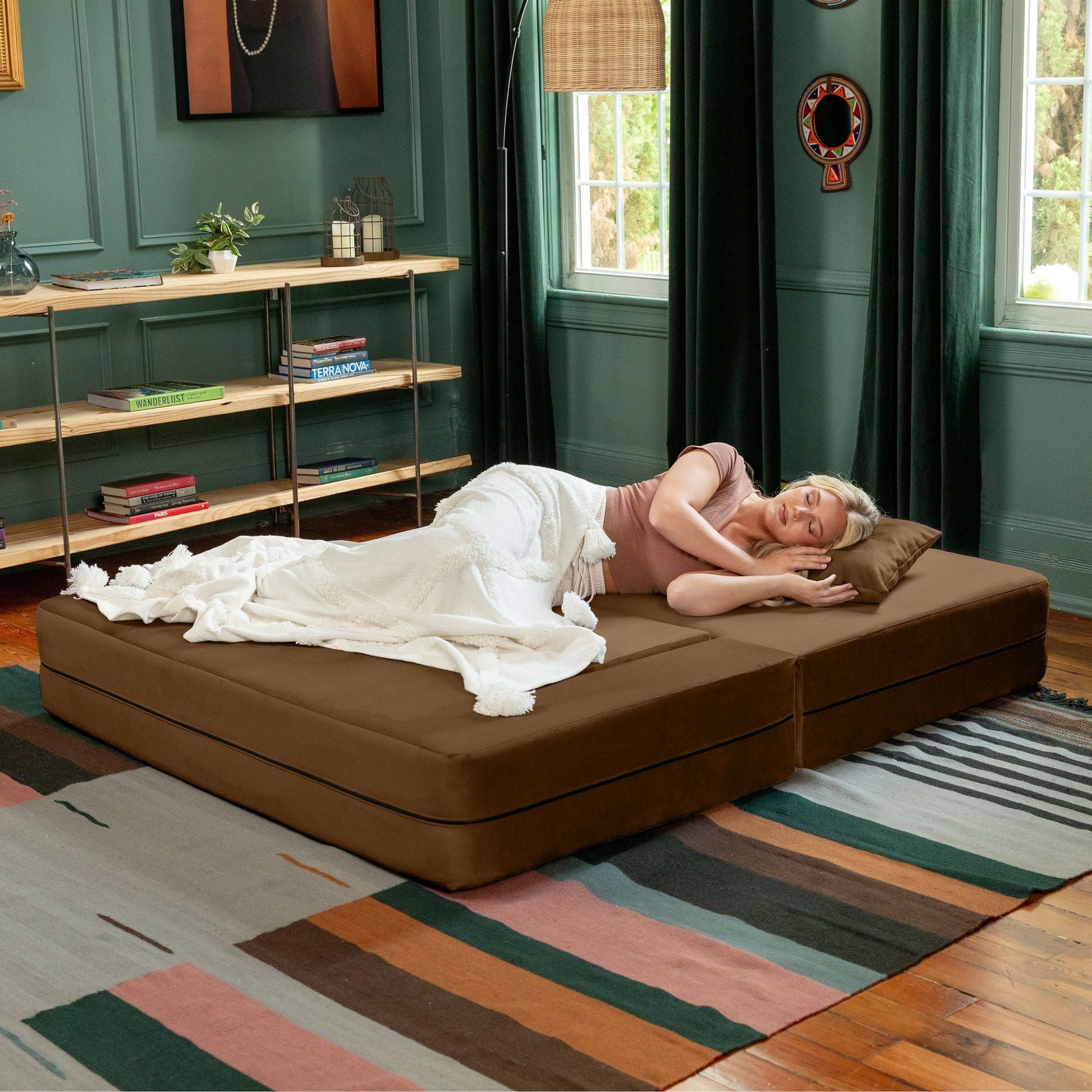 Jaxx Zipline Convertible Sleeper Loveseat & Ottomans, Textured Microvelvet - Toffee