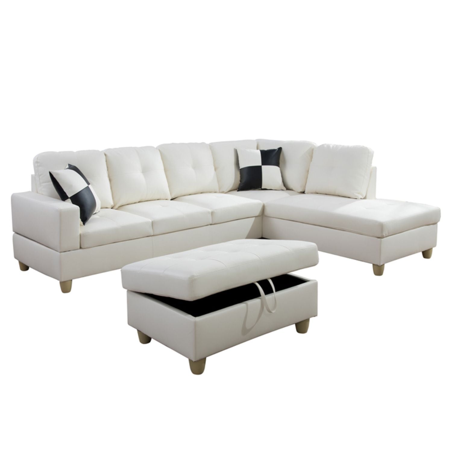 White Faux Leather 3-Piece Couch Living Room Sofa Set